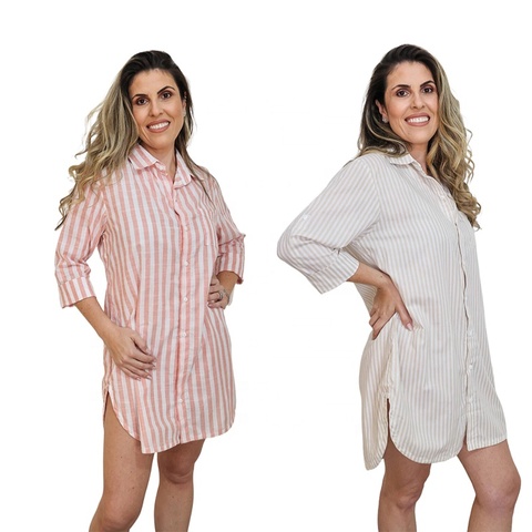 KY Custom Chemise Femme Half Sleeve Stripe Button Down with Curved Hem & Side Slit Sexy Lounge Wear for Women Summer Collection