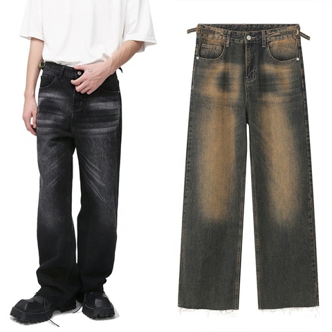 KY Classic Straight Leg Branded Jeans for Men Jeans for Men Size 32 Adjuster Waist Spray Wash Buggy Jeans Man